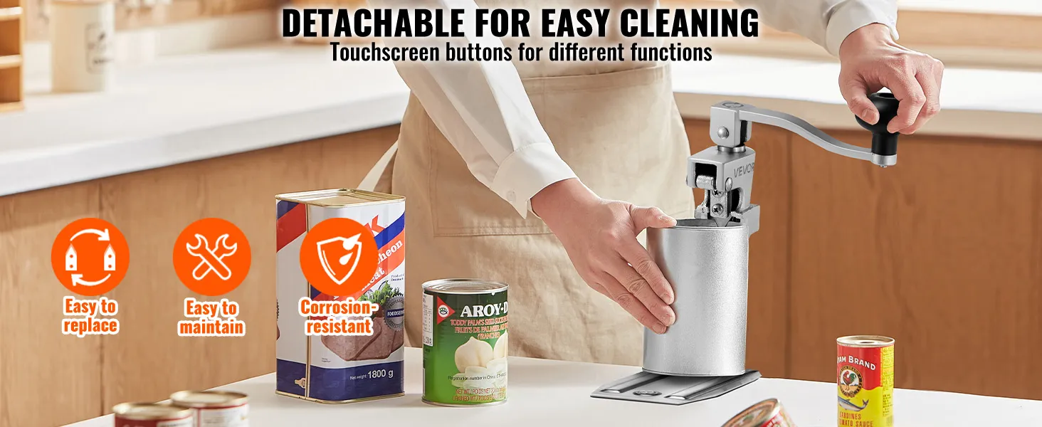 Fácil de limpiar: La cuchilla y el engranaje se pueden quitar para reemplazarlos y limpiarlos sin esfuerzo, lo que simplifica el mantenimiento y garantiza la higiene de los alimentos con este abrelatas industrial