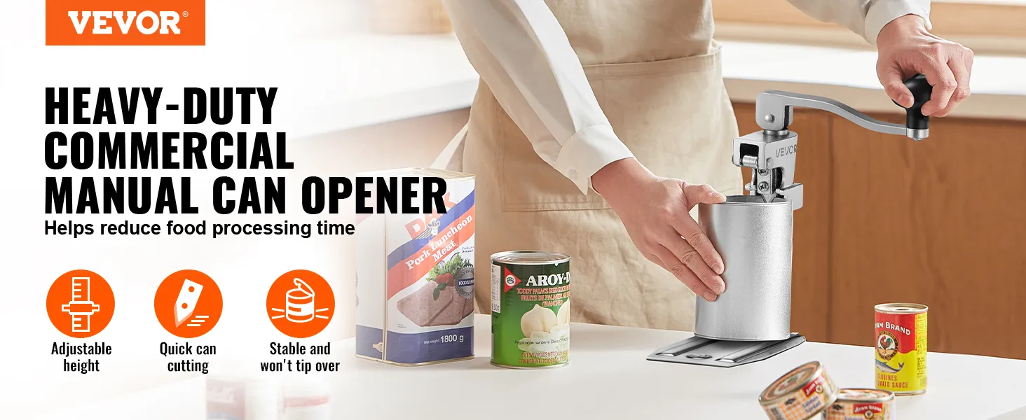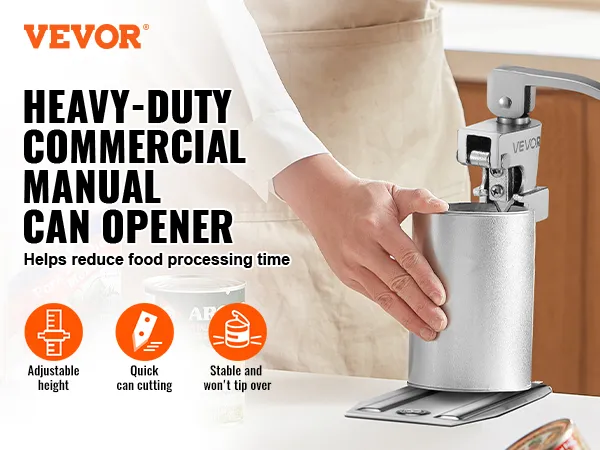 Materiales de alta calidad: Este abrelatas comercial cuenta con cuchillas dobles SUS420, engranajes de acero n.° 45, una base de hierro fundido y un mango ergonómico para un corte afilado, estabilidad y comodidad a largo plazo sin problemas de óxido