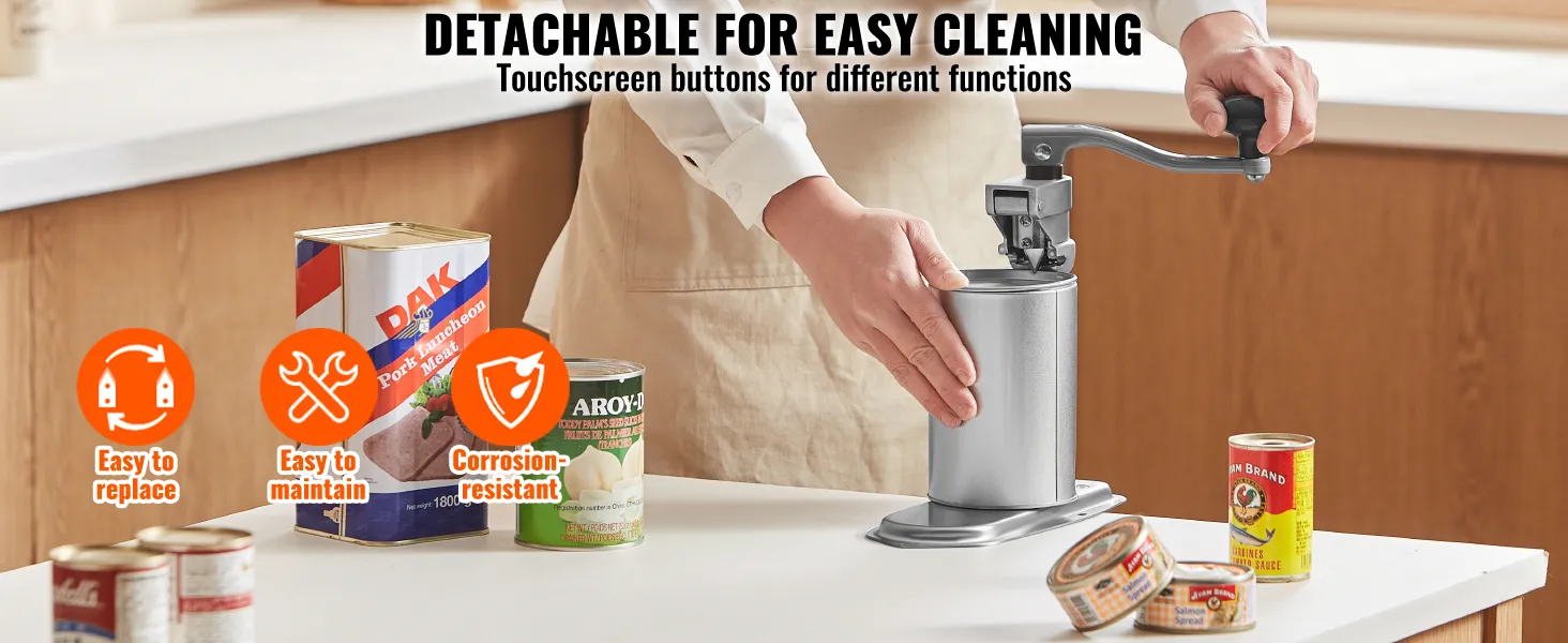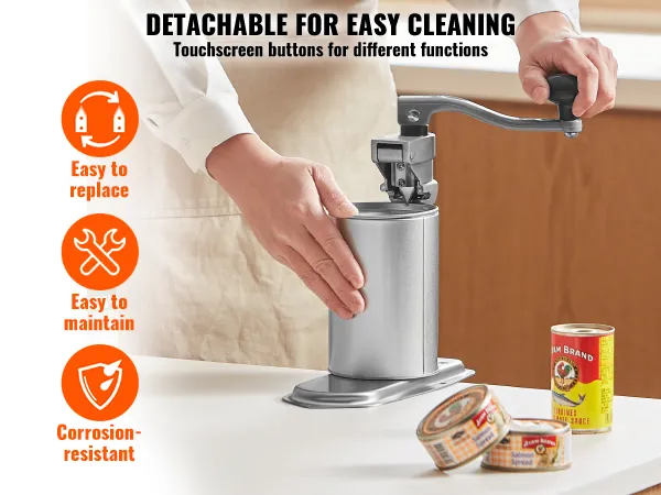 Fácil de limpiar: La cuchilla y el engranaje de este abrelatas industrial son desmontables y se pueden reemplazar y limpiar fácilmente. Esto simplifica el mantenimiento diario y garantiza la higiene durante la preparación de alimentos