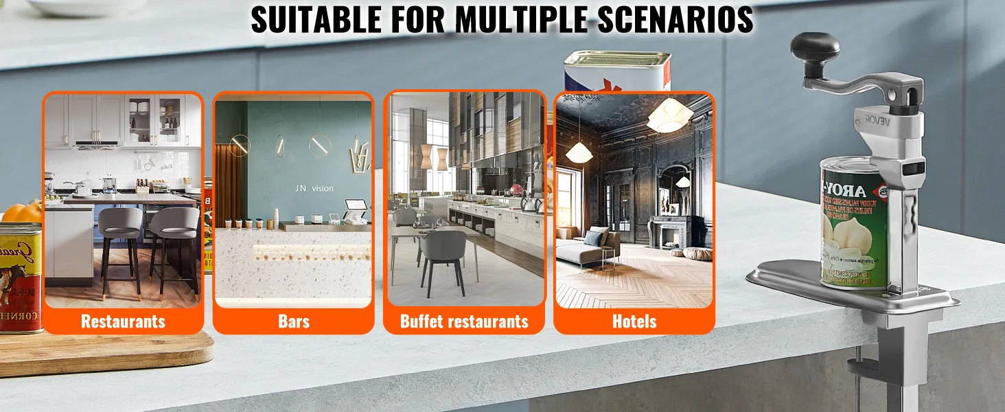 Amplia gama de aplicaciones: Este abrelatas se usa ampliamente en bares, hoteles, cocinas comerciales, restaurantes, barcos y el ejército, lo que lo convierte en una opción versátil para diversas necesidades diarias