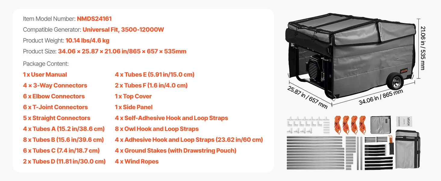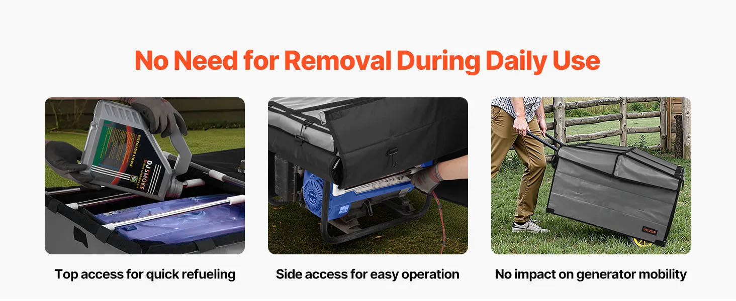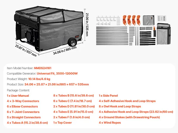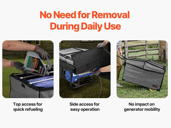 Ajuste universal: Con medidas de 87,6 x 65,8 x 53,4 cm, nuestra funda para generador portátil es compatible con la mayoría de generadores de 3500 W a 12000 W. Antes de comprar, mida su generador para asegurar un ajuste perfecto y una protección óptima