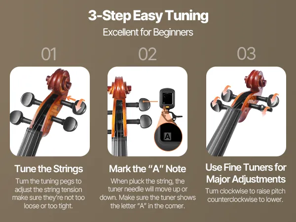 Afinación fácil: El violín incluye un afinador con detección precisa de agudos para garantizar que cada afinación alcance la afinación ideal. Tanto si eres principiante como profesional, dominarás fácilmente las técnicas de afinación y mejorarás tu experiencia interpretativa