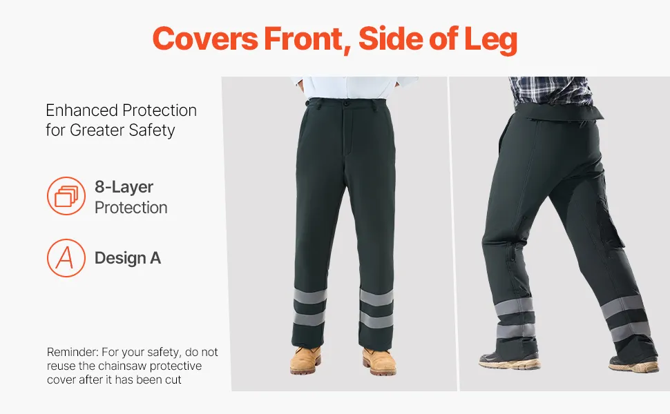 Protección integral: Las polainas para motosierra de nivel Clase A constan de 8 capas de tela, incluidas 6 capas de material resistente a cortes y 2 capas de acolchado para proteger contra lesiones por motosierra y escombros voladores