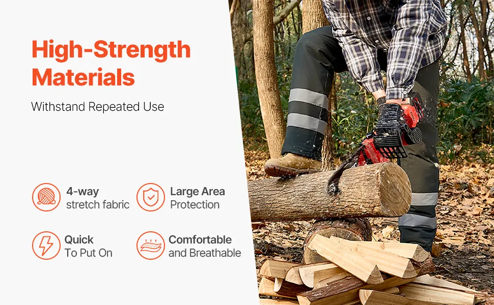 Alta comodidad: Diseñados ergonómicamente para un ajuste perfecto, estos livianos pantalones para motosierra permiten una mayor movilidad en varias posiciones de trabajo, mientras que el suave forro interior evita lesiones por desgaste durante el uso prolongado