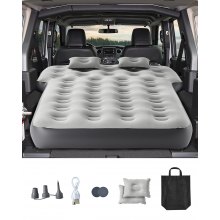 VEVOR Colchón Inflable para Coche, Compatible con Toyota 4Runner y Jeep Wrangler, con Relleno Flocado, Colchoneta Portátil Duradera con Bomba Integrada y 2 Almohadas, Gris, 1880 x 1380 x 235 mm