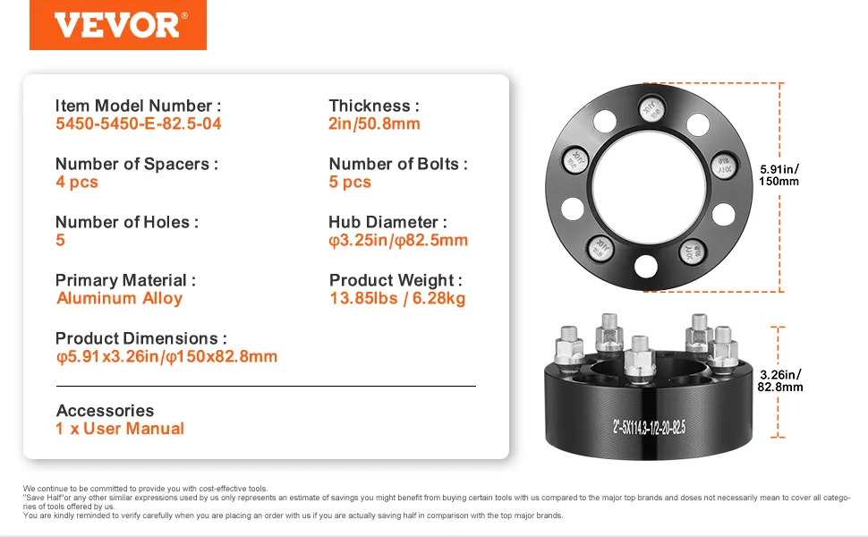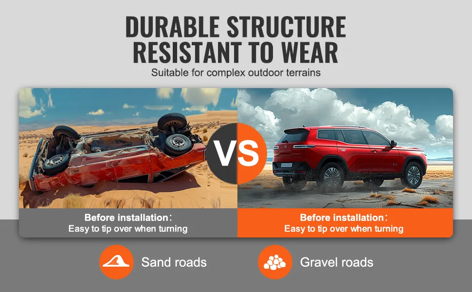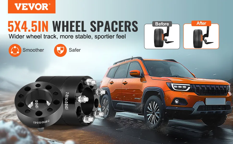 VEVOR mejora la seguridad de conducción al aumentar la distancia entre ejes. Ensanchan la distancia entre las ruedas, bajando el centro de gravedad del vehículo. Esto reduce eficazmente el balanceo de la carrocería en las curvas a alta velocidad. La distancia entre las ruedas más ancha mejora el agarre, la estabilidad y el manejo del vehículo. Estos espaciadores son esenciales para los conductores que desean más control y seguridad en la carretera. Su estabilidad adicional los hace adecuados para diversas condiciones de conducción. Estos espaciadores de rueda de 2 pulgadas son una forma sencilla pero eficaz de mejorar el rendimiento y la seguridad generales de su vehículo.