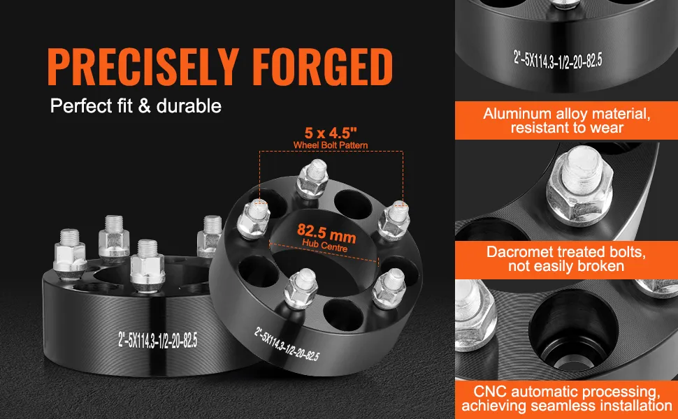 Los espaciadores de rueda de 2 pulgadas VEVOR ofrecen alta precisión y estabilidad. Esto se debe al revestimiento Dacromet en la superficie. Protege contra la oxidación y mejora la resistencia al calor. Además, mejora la durabilidad y la longevidad. El ajuste preciso y el rendimiento estable los convierten en una opción confiable para los conductores. Una combinación de material de alta calidad y mecanizado preciso garantiza que estos espaciadores funcionen bien en diversas condiciones. Proporcionan una experiencia de conducción precisa y exacta, lo que los convierte en una excelente adición a cualquier vehículo.