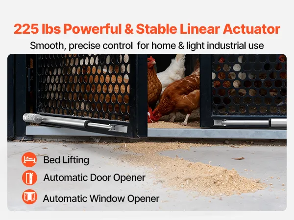 Ajuste eficiente de elevación: El actuador lineal de 12 V se mueve rápidamente a 15 mm/s, lo que lo hace perfecto para ajustes de altura frecuentes. Gestiona eficazmente las tareas de automatización cotidianas, ya sea ajustar la altura de los muebles, subir y bajar un escritorio o abrir las ventanillas del coche