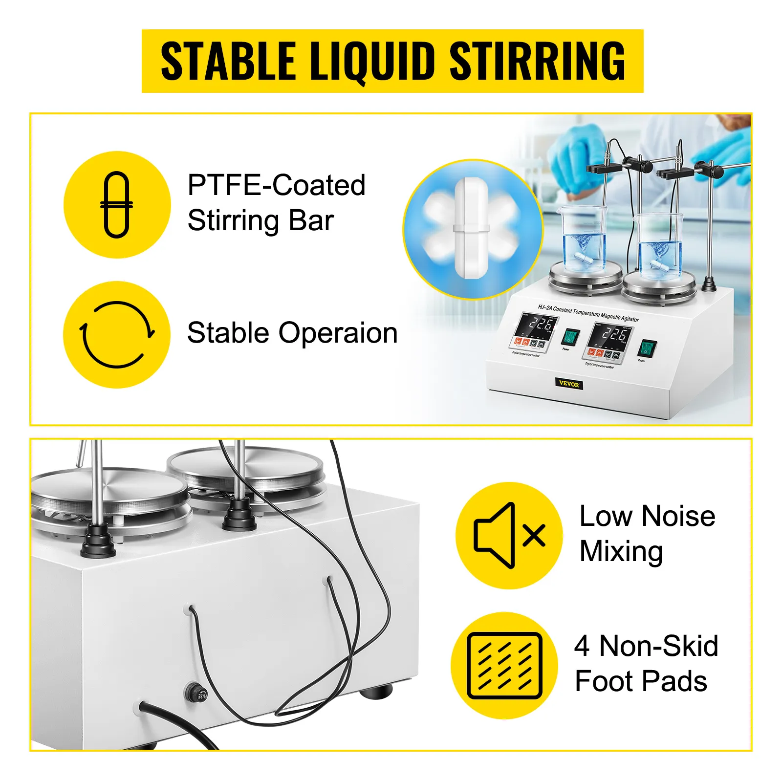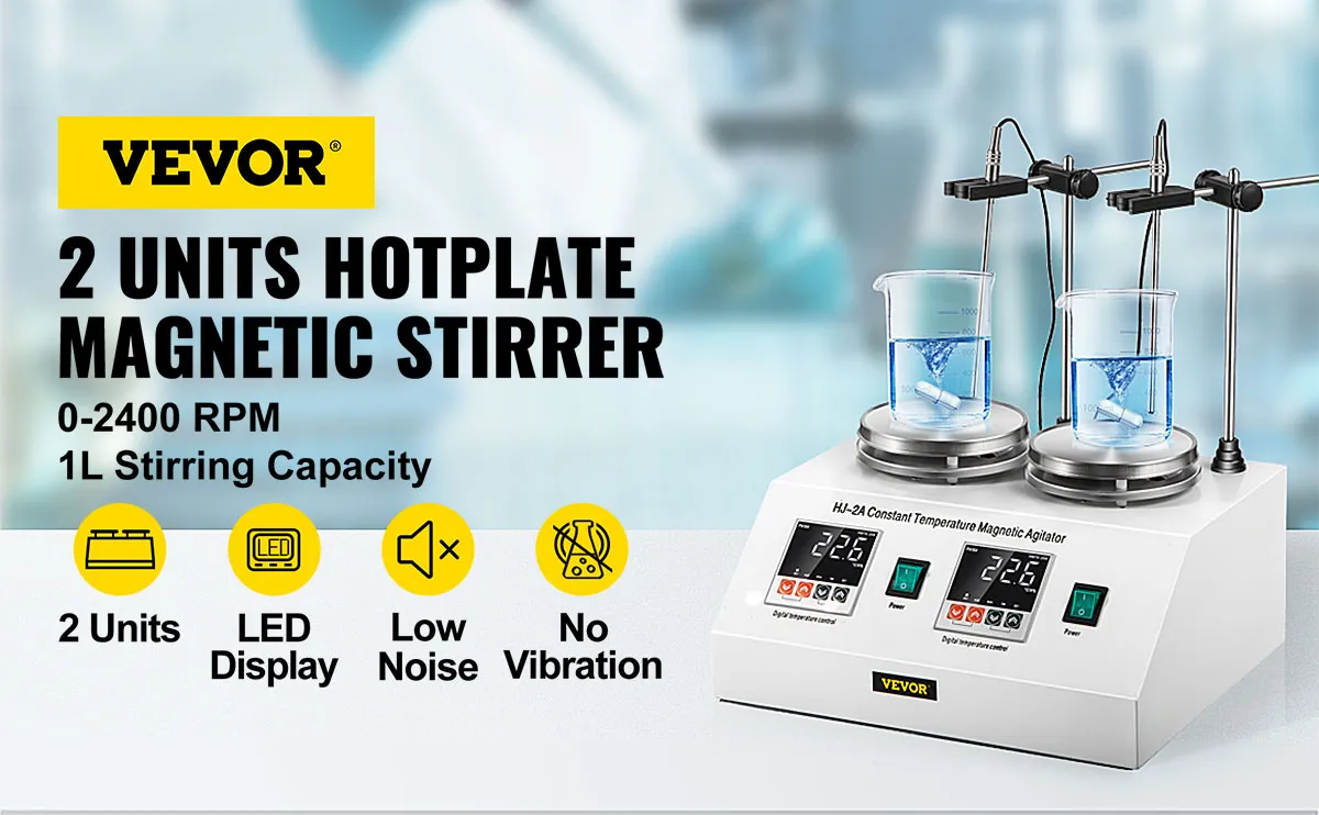 Este es un mezclador de placa magnética de 2 unidades de alta eficiencia para uso profesional en laboratorio. Combina la función de calentamiento y agitación magnética, funcionamiento estable, sin vibraciones y sin ruido durante el uso. Con 2 unidades, puede mezclar 2 tipos de solución al mismo tiempo, ahorrándole tiempo y trabajo.