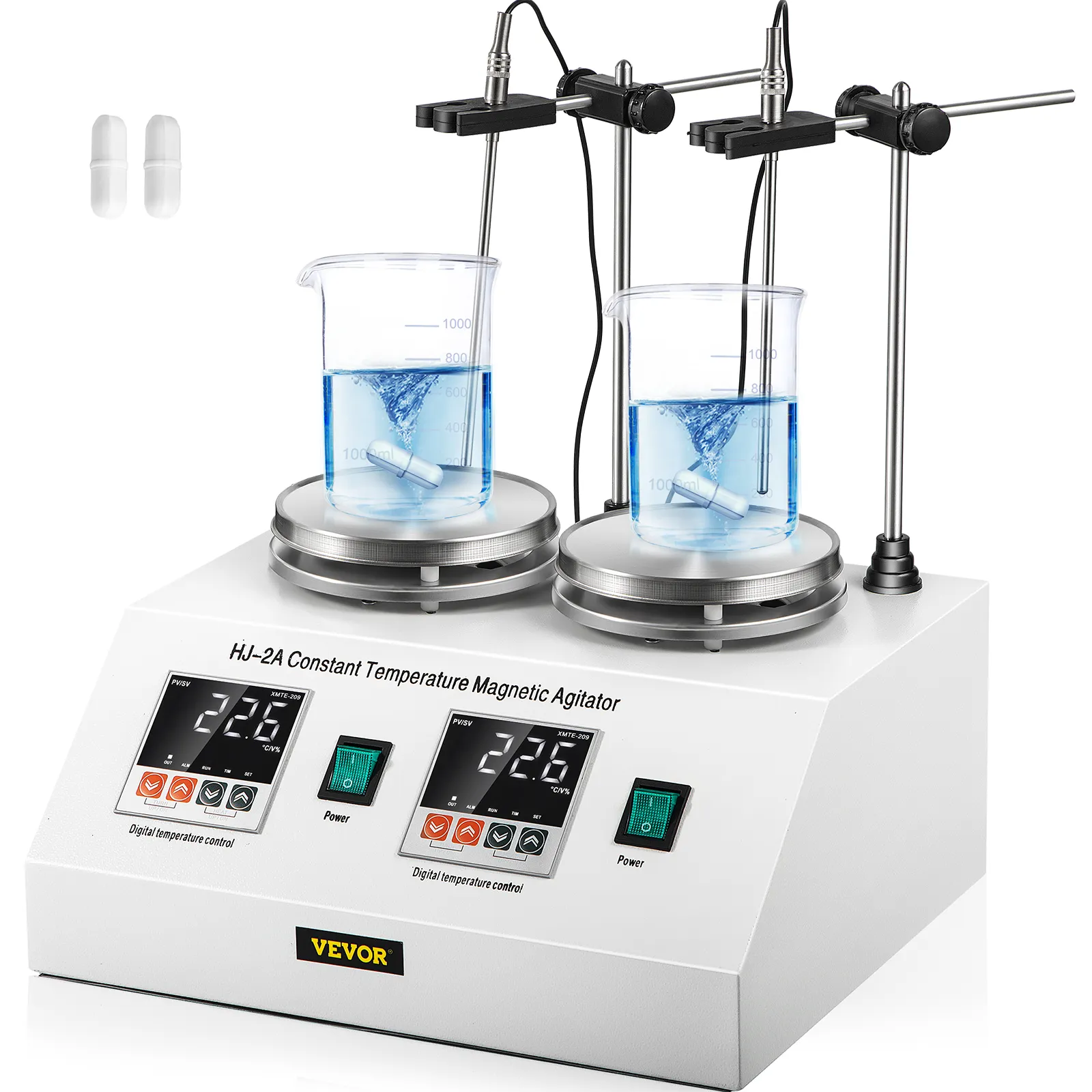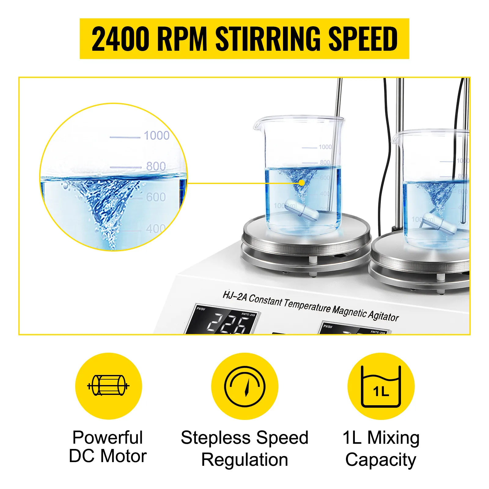 Diseño de placa caliente de 2 cabezales, con interruptor de encendido / apagado doble para controlar. Puede elegir una unidad para trabajar de forma independiente o ambas unidades para trabajar simultáneamente. Cada unidad puede procesar un máximo de 1000 ml de líquido.