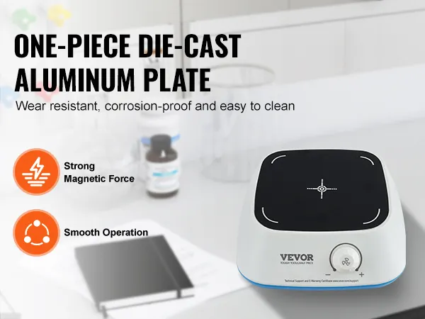Alta estabilidad: esta placa agitadora magnética cuenta con un fuerte núcleo magnético que evita que la barra agitadora se salte, incluso en su capacidad total de 3000 ml. Recordatorio amistoso: utilice la barra agitadora incluida para mezclar soluciones en vasos de vidrio.