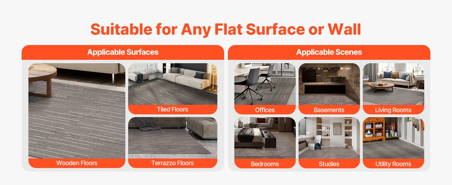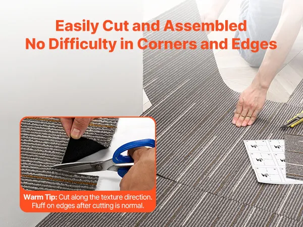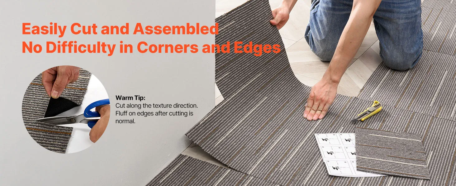 Cada loseta de alfombra se puede cortar libremente en cualquier forma y tamaño, lo que permite cubrir fácilmente áreas irregulares y cubrir toda la habitación sin problemas.