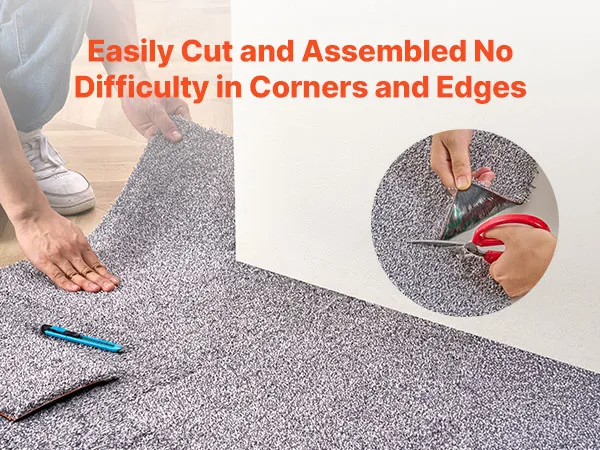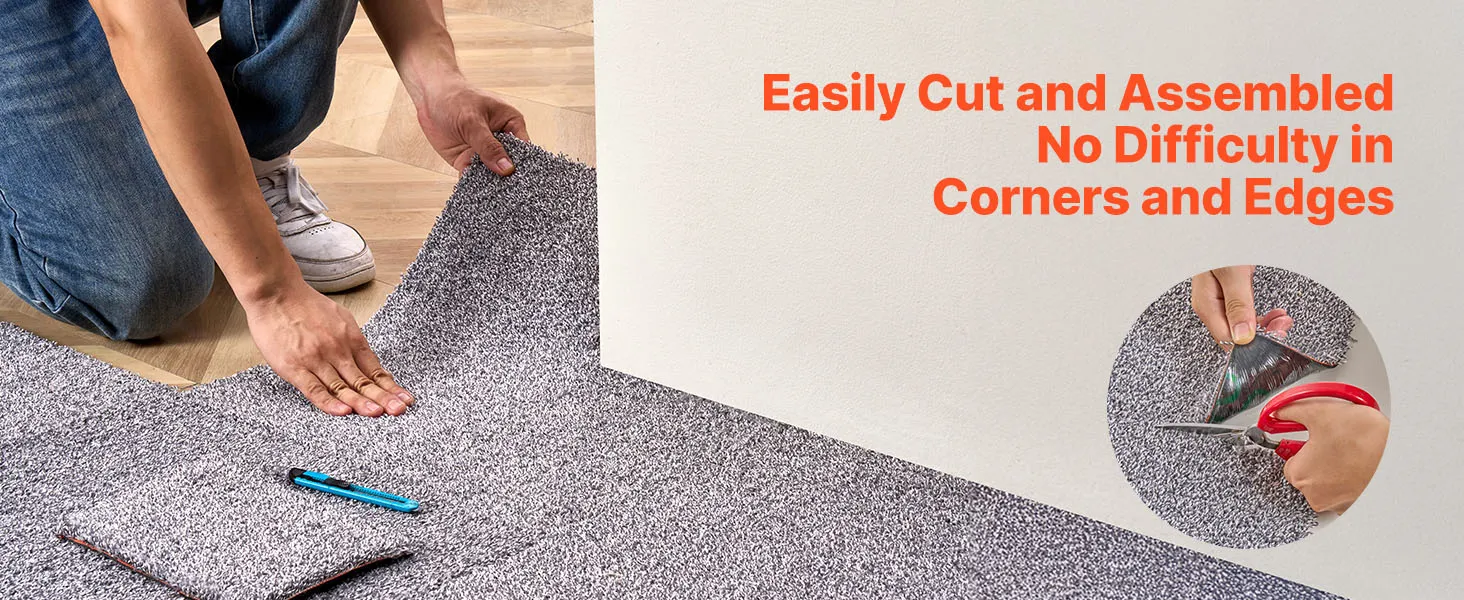 Cada loseta de alfombra se puede cortar libremente en cualquier forma y tamaño, lo que permite cubrir fácilmente áreas irregulares y cubrir toda la habitación sin problemas.