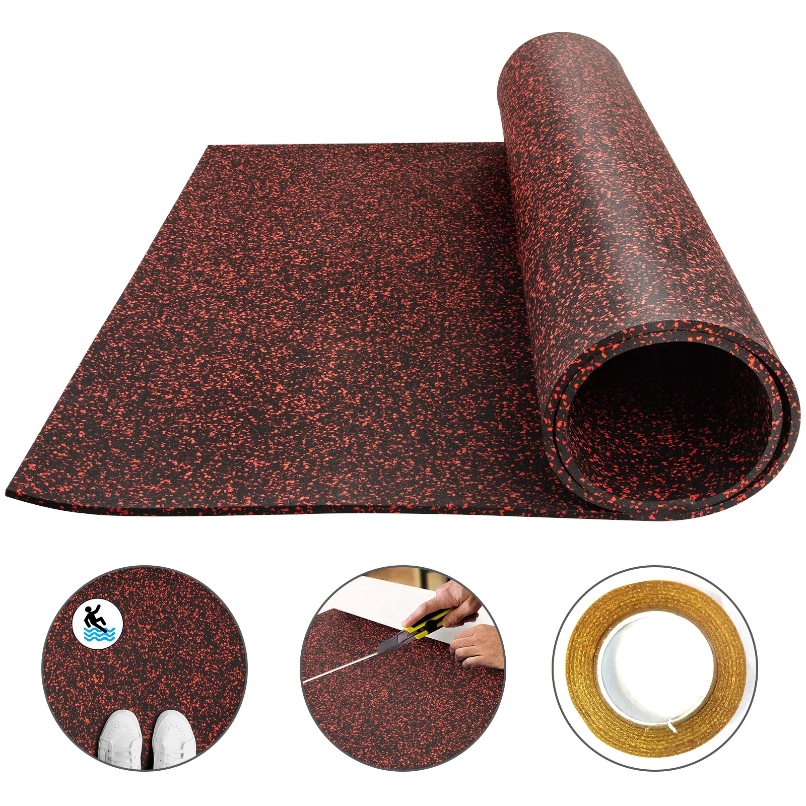 Aquí le ofreceremos una alfombrilla de goma de primera calidad con usos múltiples. Hecho de caucho reciclado ecológico y 20% de EPDM, es moderno y duradero. Es resistente al desgaste, antideslizante y de absorción de impactos. Úselo para proteger su piso o baldosas de cerámica. Perfecto para uso industrial, comercial y residencial.