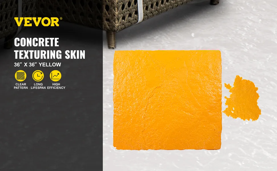 Este molde con textura de concreto de 91,4 x 91,4 cm presenta un color amarillo brillante y una apariencia de estilo piedra. Adopta material de poliuretano sin costuras para garantizar la durabilidad, destacándose por su fabuloso patrón de estampado y alta eficiencia. Sus instalaciones rápidas y sencillas le brindan mucha más alegría en su decoración.