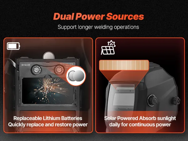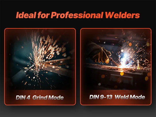Equipado con niveles de sombra DIN ajustables(DIN 4 (modo de pulido) y DIN 9-13(modo de soldadura), este casco de soldadura le permite cambiar fácilmente los modos para adaptarse a diferentes tareas, mejorando la eficiencia y la seguridad del trabajo.