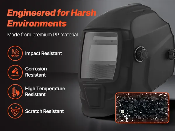 Fabricado con materiales de alta calidad, este casco de soldadura ofrece una durabilidad excepcional y resistencia a impactos y altas temperaturas. Bloquea eficazmente las chispas y las quemaduras por altas temperaturas, brindando una protección confiable para la cara y los ojos.
