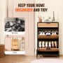 VEVOR Zapatero de Ratán Organizador Estrecho para Zapatos con 2 Cajones de Ratán Abatibles y 1 Cajón Deslizante, Patas de Metal, Zapatero Estrecho para Entrada, Armario, Pasillo, Color Negro