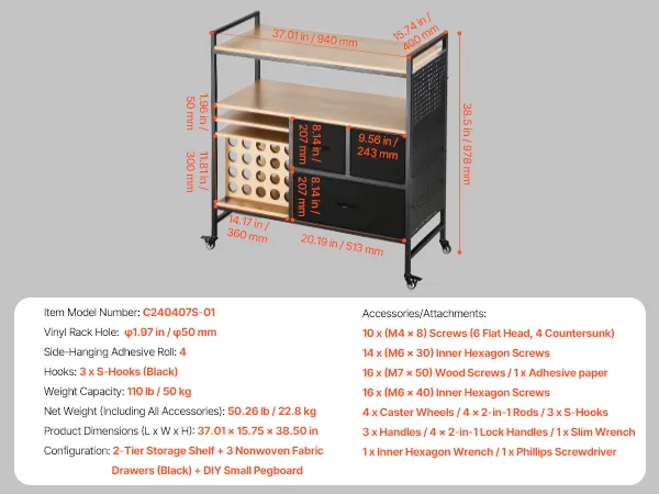 Compatibilidad universal: Con unas dimensiones generales de 37,01 x 15,75 x 38,50 pulgadas (940 x 400 x 978 mm), esta mesa de organización y almacenamiento para manualidades es compatible con todas las máquinas de corte y prensas térmicas. Tanto si eres un aficionado principiante del bricolaje como un artesano profesional, esta mesa puede satisfacer tus necesidades