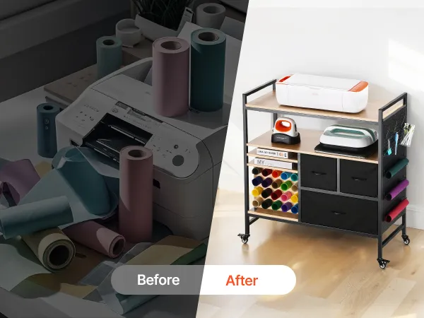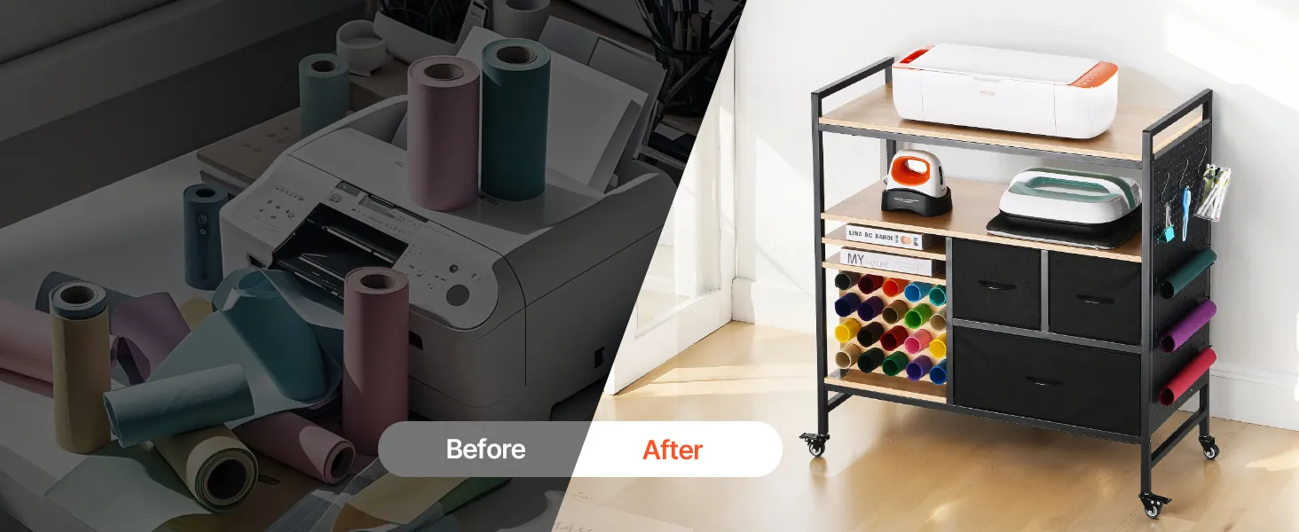 Este carro de manualidades con ruedas y mesa de almacenamiento es adecuado para todas las máquinas de corte. Además, se puede transformar en un soporte de impresora, un carrito de costura o un armario de almacenamiento diario para satisfacer sus diversas necesidades de manualidad.
