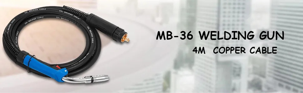 Antorcha de soldadura protectora de CO2 MB-36 premium con cable flexible de 4 m (13,1 pies) adopta una boquilla de diseño de espesamiento sin costuras, uniones de cobre puro y un cable sin oxígeno. Es más fácil de instalar. Mango ergonómico, seguro y conveniente para operar.