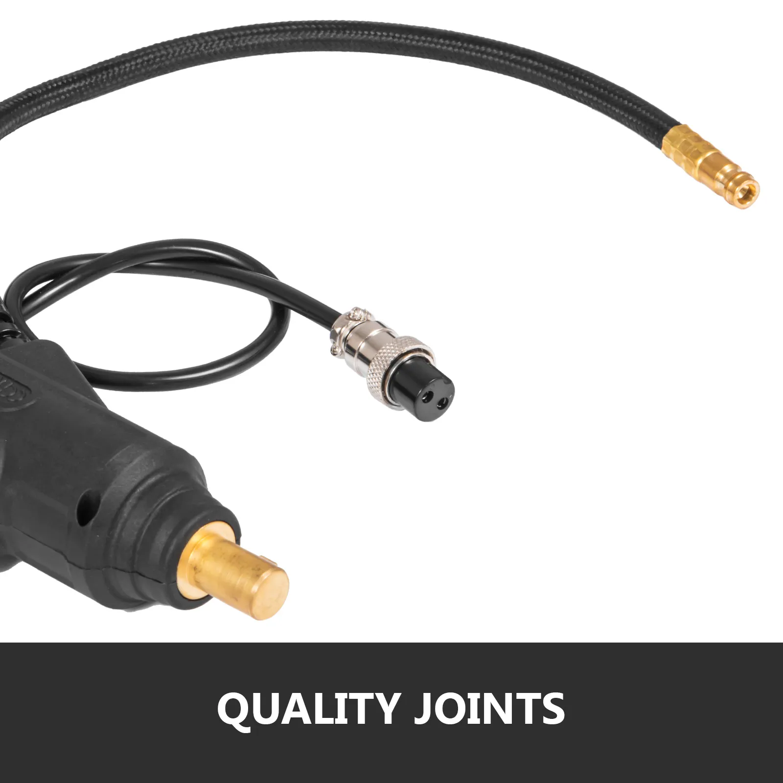 Antorcha para aguijón de pistola Tig de calidad superior, cable de 12,5 pies / 3,7 m. Con sus accesorios completos, puedes hacer que sea fácil de aplicar en diferentes lugares. Reducir el sobrecalentamiento, el tiempo de inactividad y el costo, y proporciona comodidad al operador a través de un diseño de enfriamiento único. Con un botón de presión en la antorcha para facilitar tu operación.
