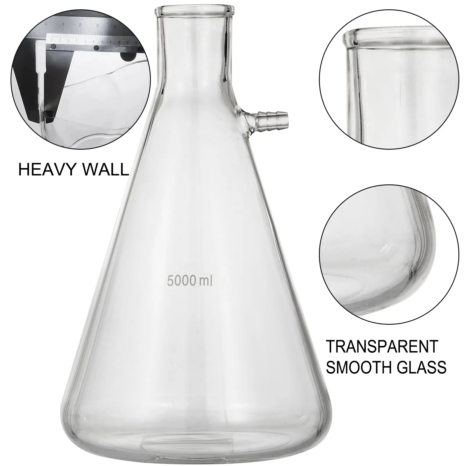 El matraz de filtro está hecho de vidrio de borosilicato de alta resistencia con un espesor de pared uniforme y estabilidad a altas temperaturas, suave y sin burbujas.