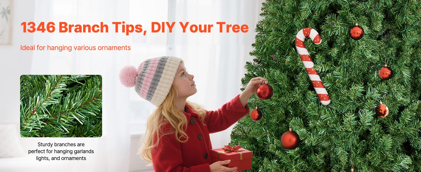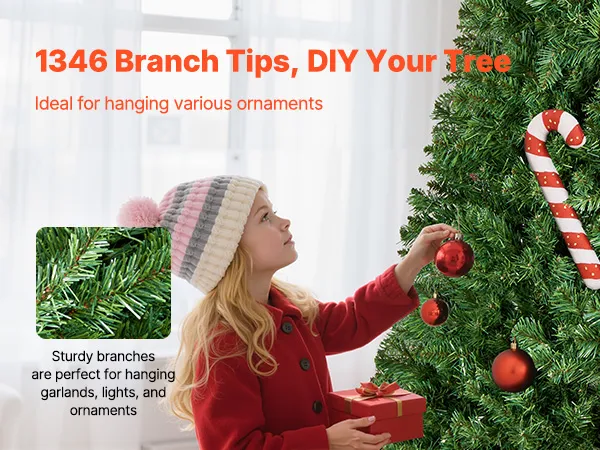 Apariencia realista y completa: Con 1346 ramas, nuestro árbol de Navidad artificial tiene una apariencia exuberante y realista. Separe y doble con cuidado cada extremo del alambre en diferentes direcciones para distribuirlos uniformemente y lograr un aspecto más denso y natural