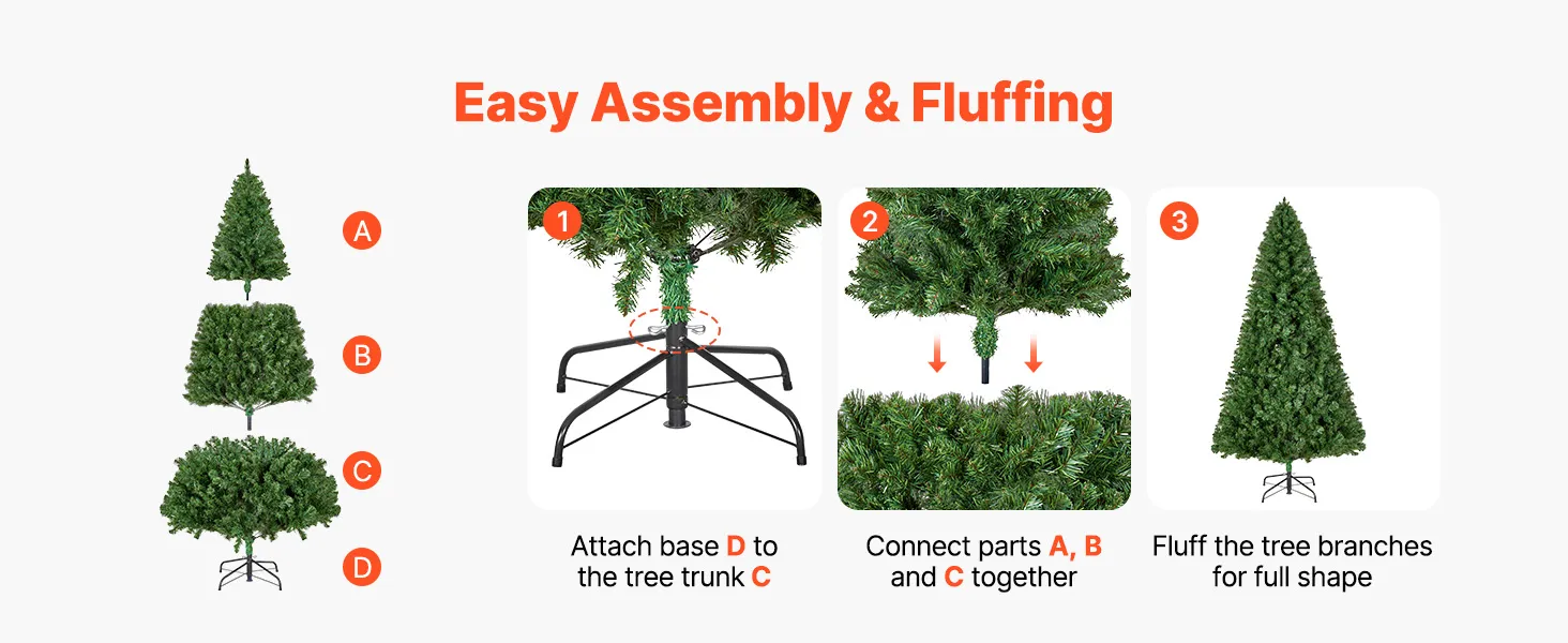 Nuestro árbol de Navidad es fácil de armar, lo que simplifica mucho tus preparativos. En solo 3 pasos, puedes armarlo, decorarlo y darle una forma natural y exuberante.