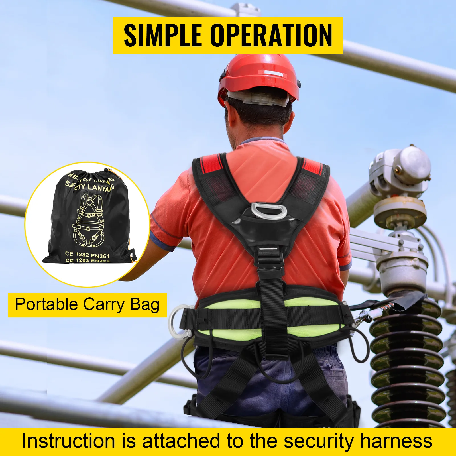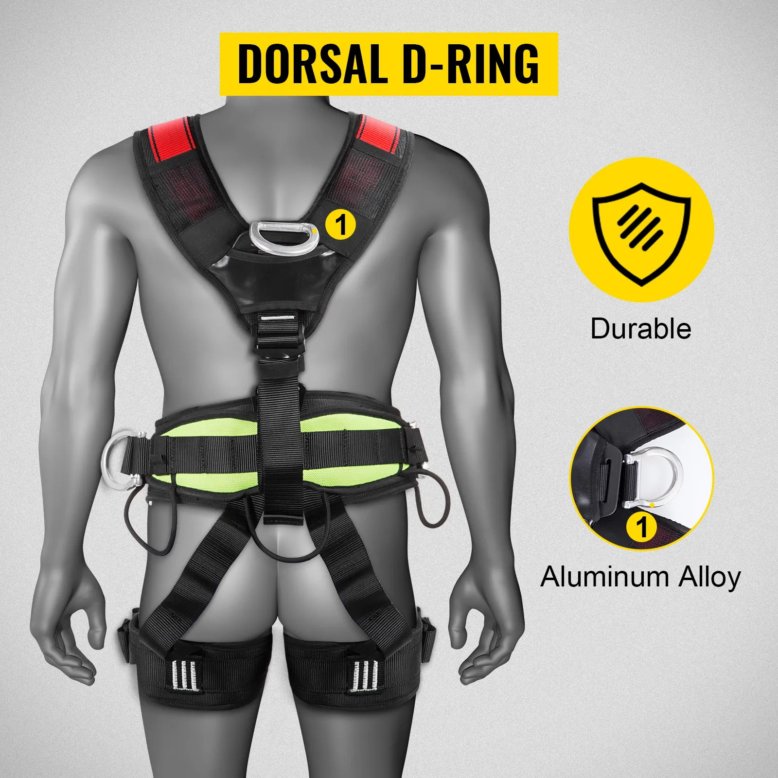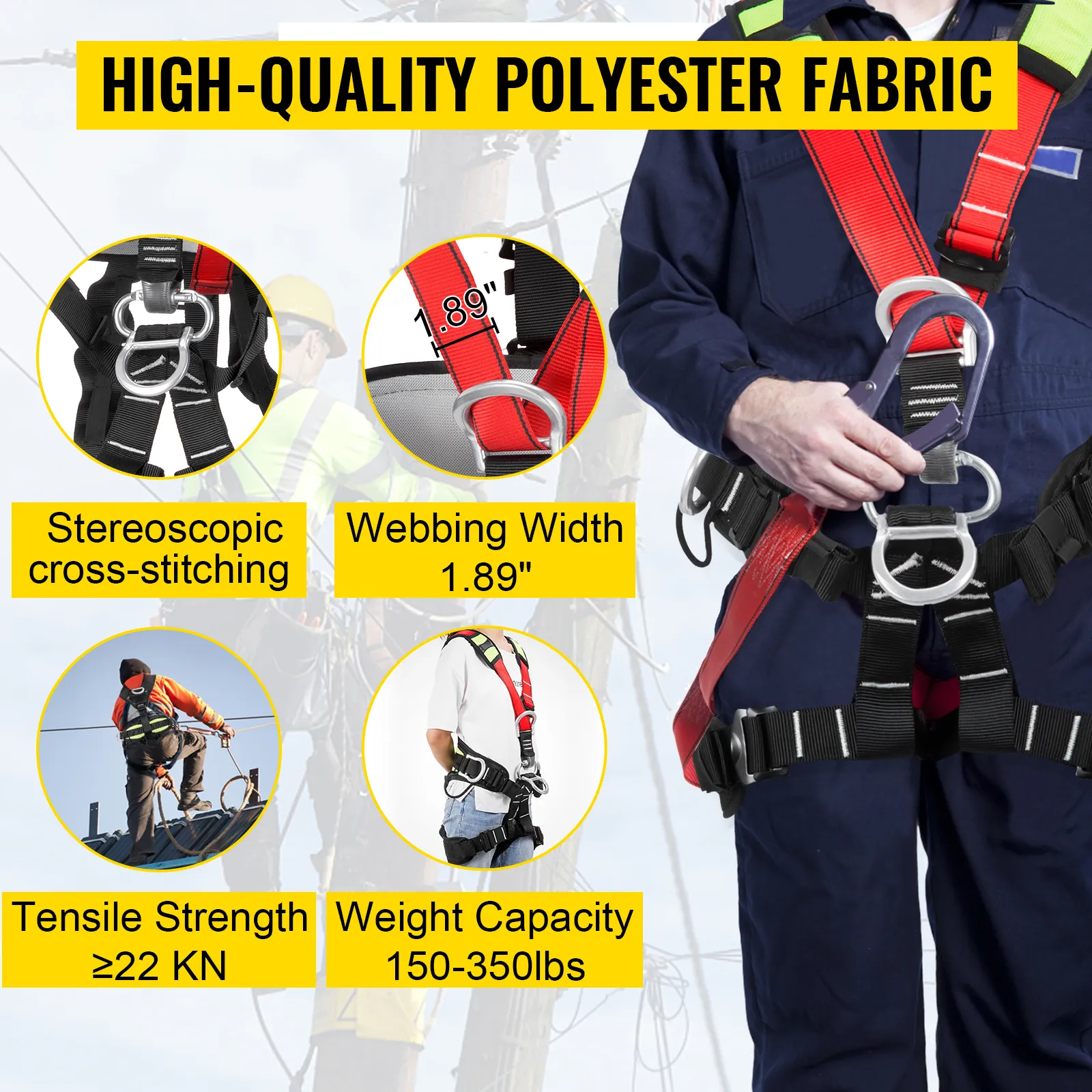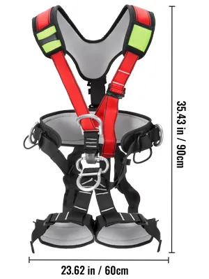 Este arnés de seguridad para escalada es una herramienta muy útil para reparar techos y limpiar edificios. Te mantiene seguro y a salvo. Este equipo de escape de piso está diseñado para ser fácil de usar y almacenar. Incluso puedes enganchar tus herramientas al arnés. Está hecho de material resistente como poliéster de alta resistencia y está diseñado para durar. Puede soportar mucho peso, hasta 1764 libras. Tiene acolchado en todos los lugares adecuados para garantizar que te sientas bien.