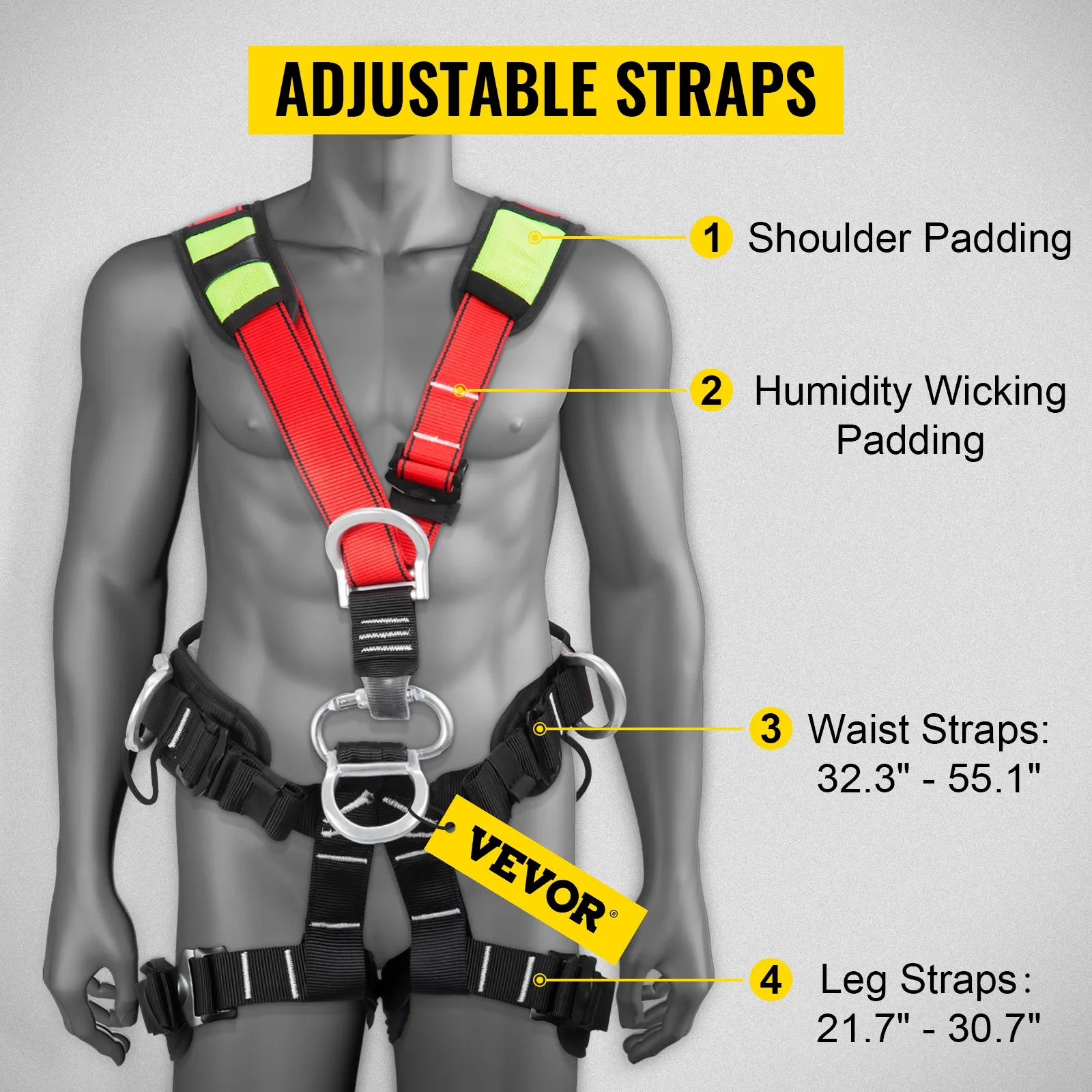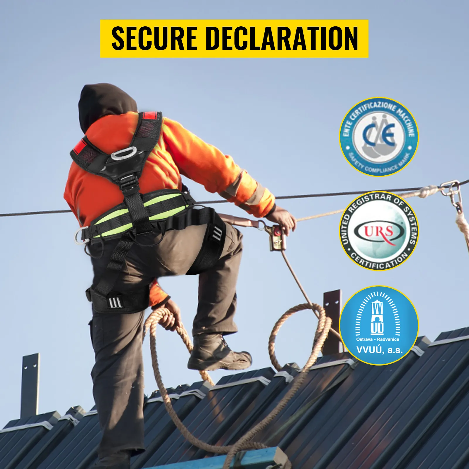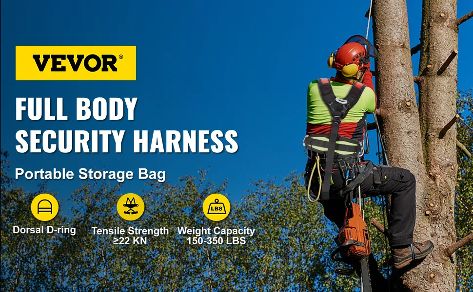 Este arnés de seguridad para escalada es una herramienta muy útil para reparar techos y limpiar edificios. Te mantiene seguro y a salvo. Este equipo de escape de piso está diseñado para ser fácil de usar y almacenar. Incluso puedes enganchar tus herramientas al arnés. Está hecho de material resistente como poliéster de alta resistencia y está diseñado para durar. Puede soportar mucho peso, hasta 1764 libras. Tiene acolchado en todos los lugares adecuados para garantizar que te sientas bien.