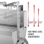 Se pueden realizar ajustes de altura en 3 niveles regulando la posición de la varilla de saliva. Siéntase libre de cambiar la altura de acuerdo con la diferente cantidad y espesor de la carga. Altura: 5,7'' - 12,6'' / 14,5 - 32 cm (Mín. a Max desde la superficie de la parrilla)