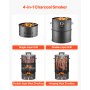• 4-in-1 Versatile Use: VEVOR charcoal smoker includes 2 cooking grates and a hanging rod for multiple cooking options.. Open the lid for single- or double-layer grilling, close it for dual-layer smoking, or hang meat on the rod for a rich, flavorful smoking