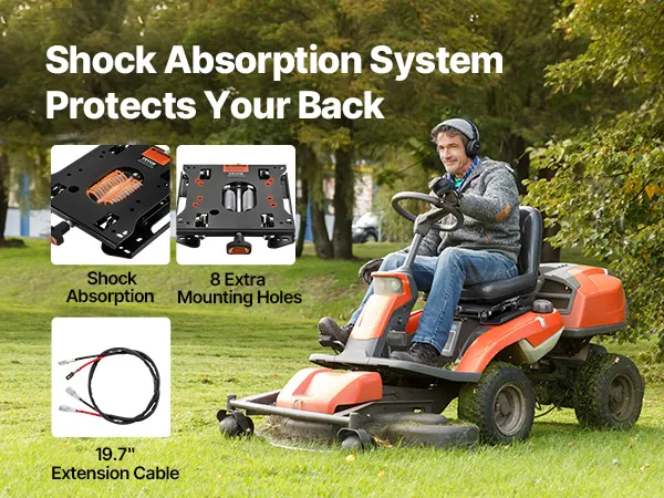 Instalación flexible: El kit de suspensión del asiento de la cortadora de césped incluye un cable de extensión de 50 cm (19,7"), lo que ofrece flexibilidad para diferentes configuraciones de cableado. Esto garantiza conexiones fluidas y menos restricciones de instalación, lo que simplifica el proceso de configuración