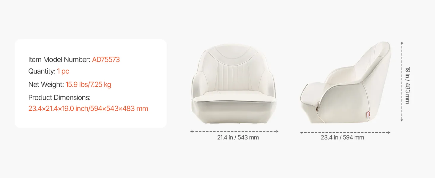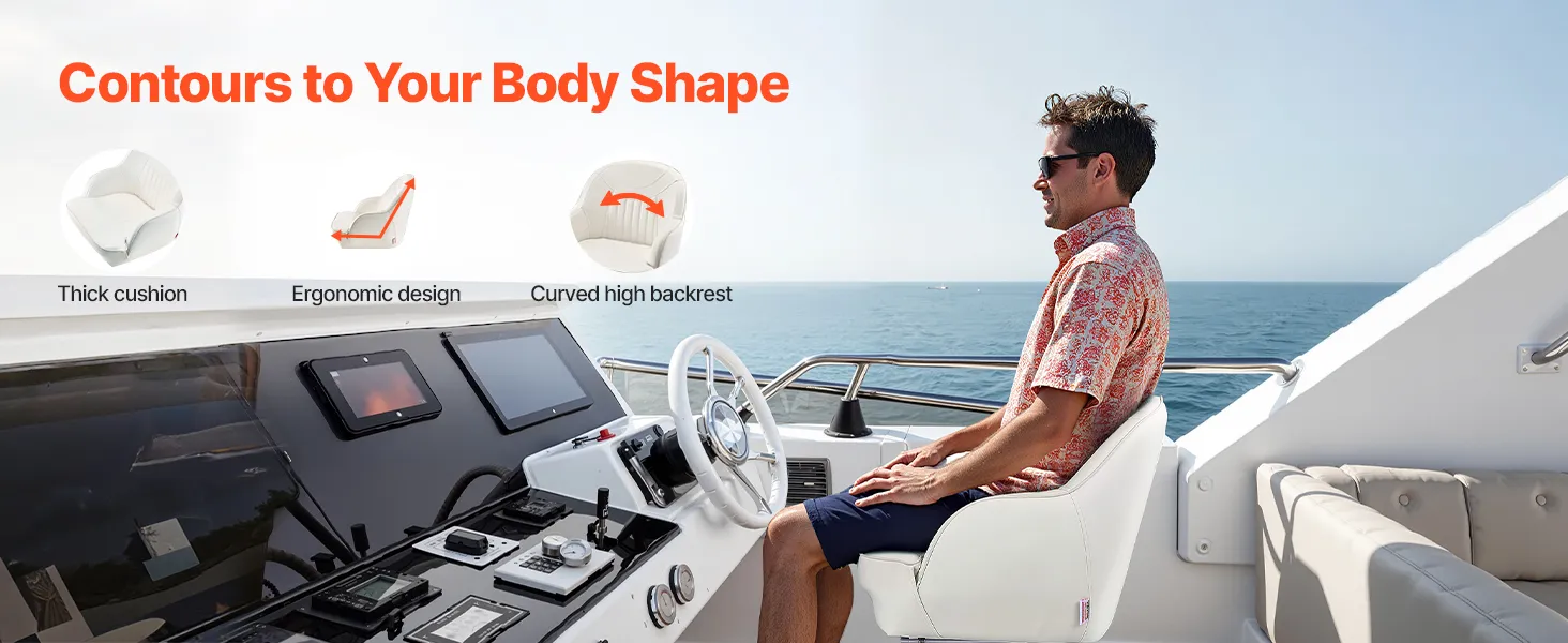 Ideal para instalar en botes de pesca o en las posiciones de conducción o cubiertas de yates pequeños. Nuestro asiento tipo butaca para bote es su compañero ideal para actividades marinas, ya sea que esté navegando, pescando o conduciendo.