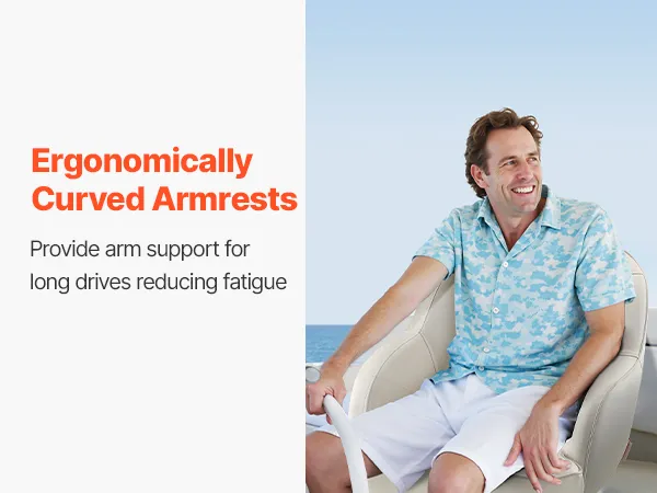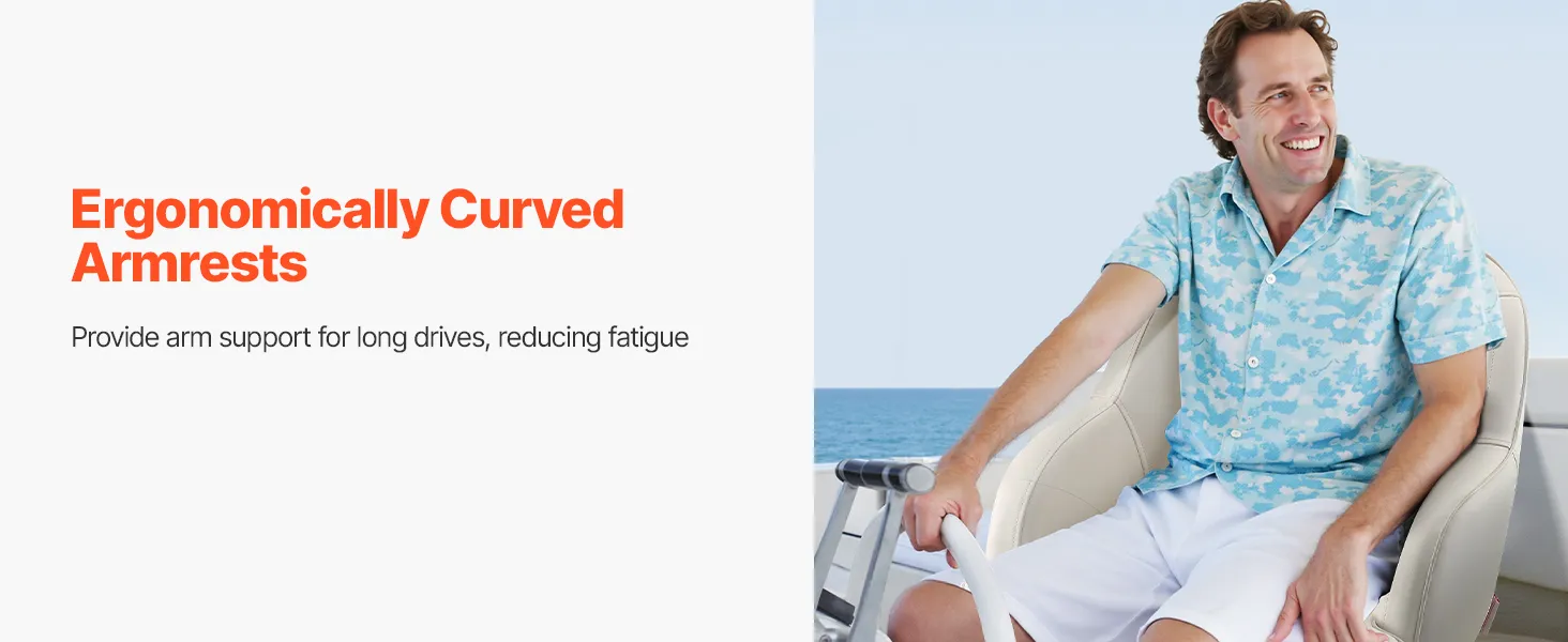 Soporte de apoyabrazos curvo: El apoyabrazos de nuestro asiento de barco de capitán brinda un soporte cómodo para su brazo, lo que reduce la tensión del codo y evita la fatiga muscular durante viajes largos