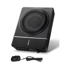 VEVOR Subwoofer para Debajo del Asiento para Automóvil 254 mm 300 W Altavoz Compacto para Coche Amplificador Incorporado Entrada de Nivel Alto Bajo Controlador de Volumen Control Remoto con Cable