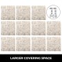 Cada hoja de baldosas tiene un tamaño de 12" x 12", 2 mm de espesor. Ven con 11 hojas de azulejos, que pueden cubrir min. 11 pies cuadrados de espacio. Cubre un 40% más de área que el producto de 10" x 10" en el mercado.