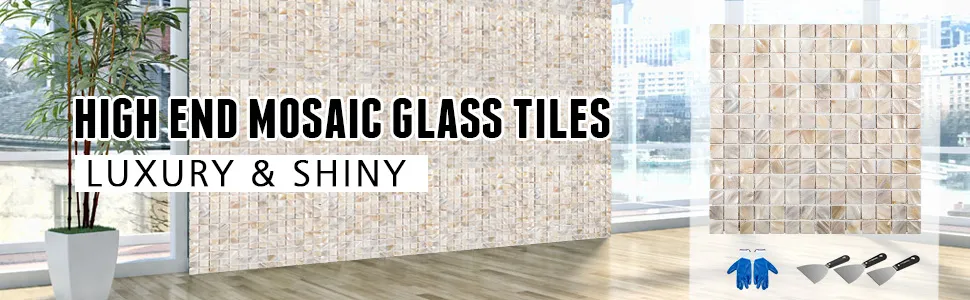 El azulejo está compuesto de concha natural y alto brillo. Es ecológico y resistente al calor y la humedad. Limpie la superficie, antimoho para el protector contra salpicaduras.