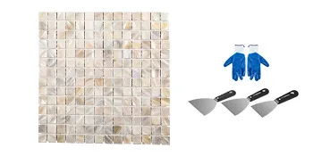 Malla hacia atrás, las baldosas son adhesivas a la malla firmemente. Lechada sin arena para la instalación. Diseño de malla para cortar, recortar y hacer bricolaje fácilmente. También le enviaremos un par de guantes, 3 accesorios de instalación.