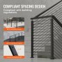 Conforms to standards: The L-shaped corner railing post with holes has a cable spacing of 3.14 inches (7.98 cm), and the span between two structure posts should not normally exceed 4 feet to pass the 4-inch ball test. Leave space at the bottom of the railing for custom drilling. For safety, maintain a consistent hole spacing of 3.14 inches (7.98 cm).