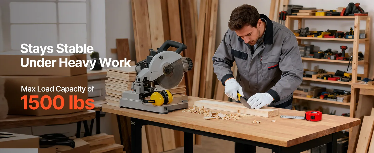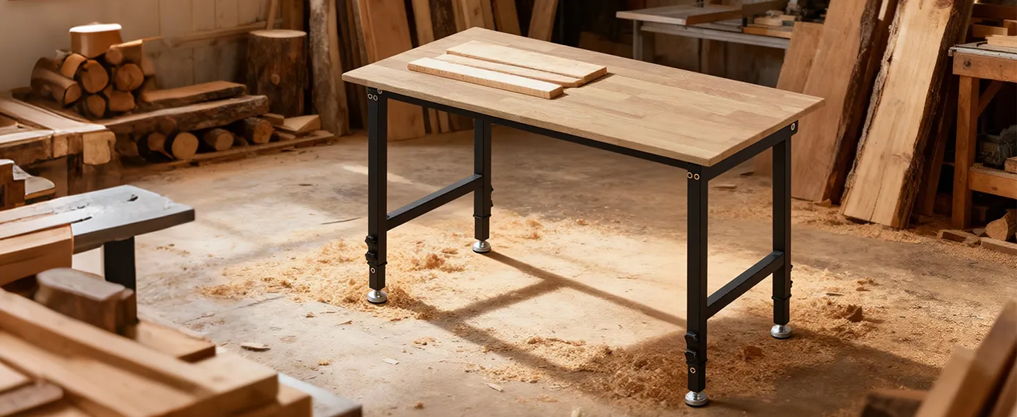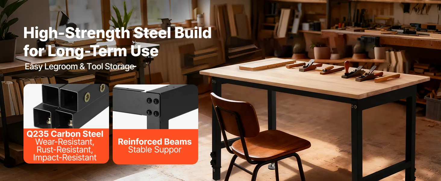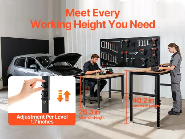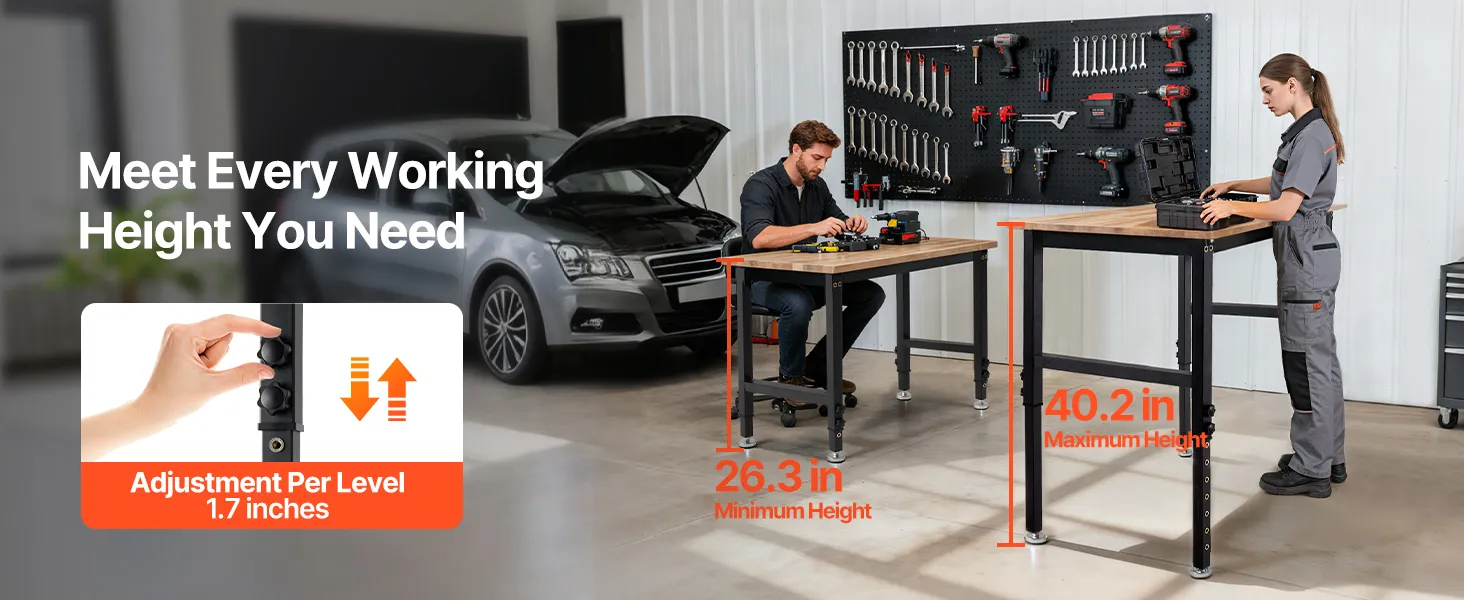 VEVOR Banco de Trabajo 122 x 60 cm, Mesa de Taller Altura Ajustable de 8 Niveles de 67-102 cm, Carga de 680 kg, Mesa de Madera Grosor del Tablero de 2 cm Marco de Metal para Oficina, Garaje, Hogar