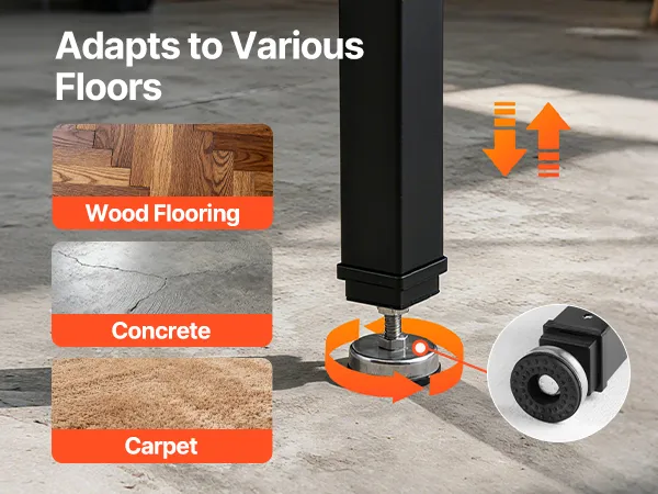Las patas ajustables permiten un equilibrio preciso en suelos irregulares y eliminan las oscilaciones.