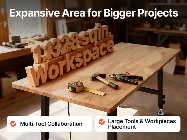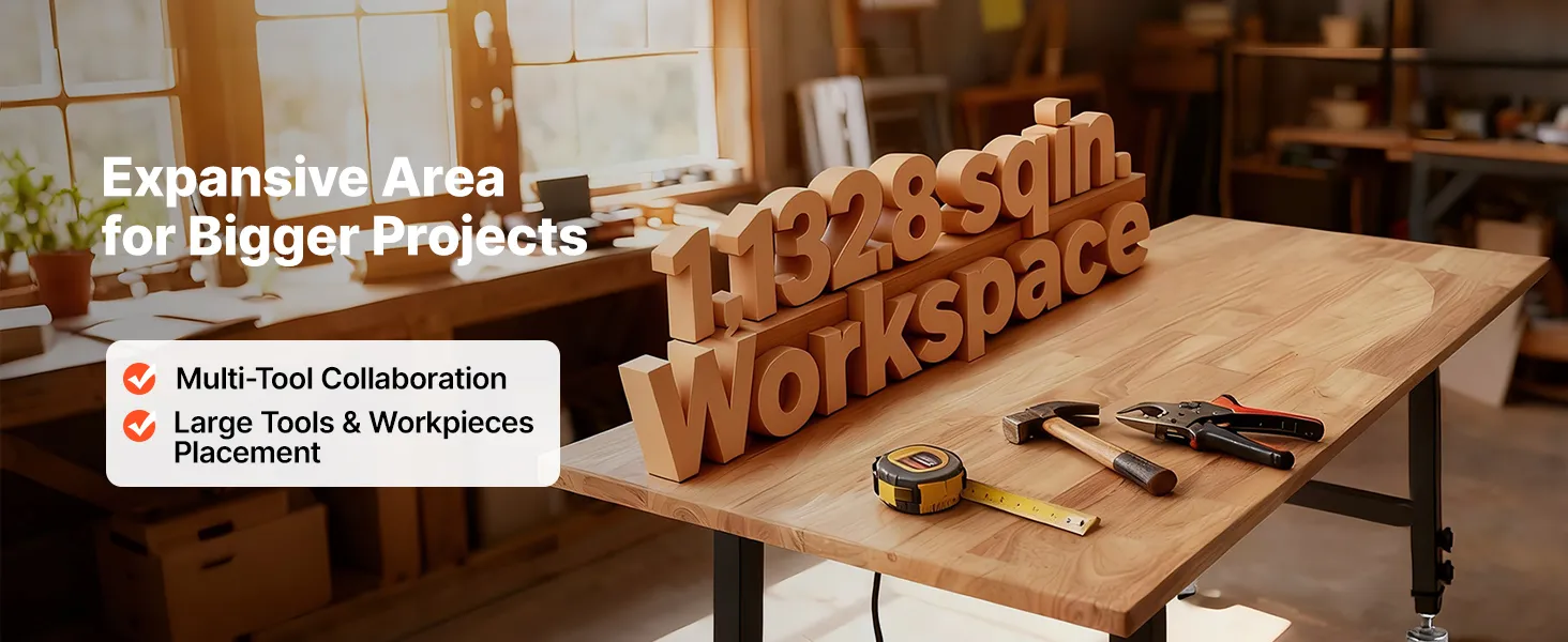 Amplia superficie de trabajo: Esta encimera mide 122 x 60 cm. Podrá colocar piezas grandes, usar varias herramientas y agilizar sus proyectos