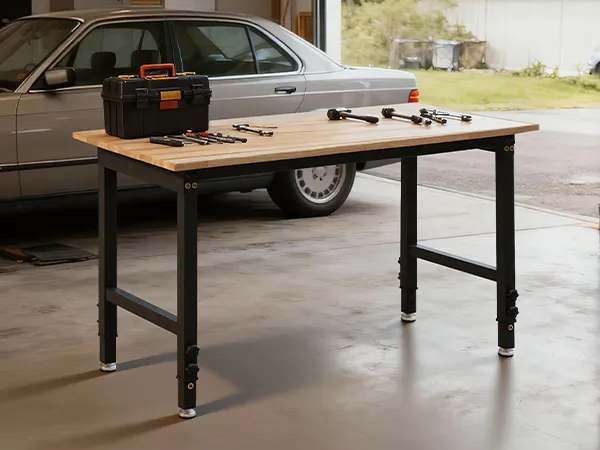 Este banco de trabajo ajustable de 122 x 60 cm soporta hasta 680 kg. Cuenta con 8 ajustes de altura para adaptarse a lijado, ensamblaje, reparaciones y más.