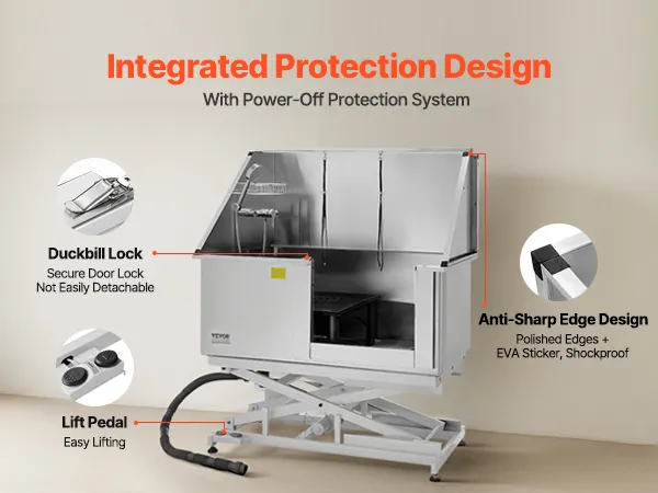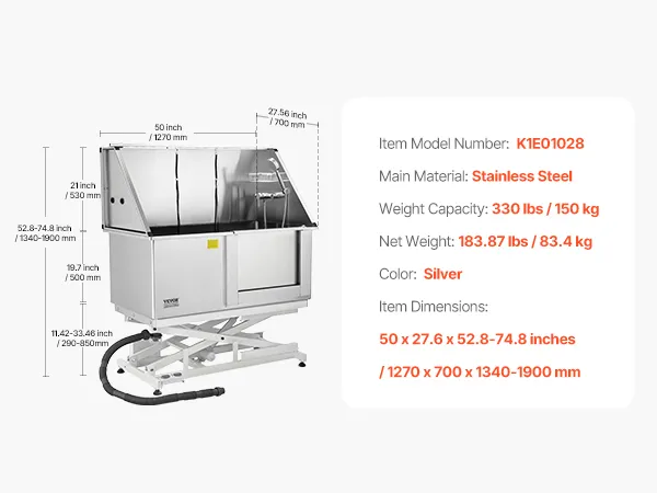 VEVOR Estación de Lavado de Perros con Elevación Eléctrica, Bañera de Acero Inoxidable 127 cm con Filtro de Agua de Polietileno, Grifo y Cabezal de Ducha, Fregadero para Mascotas, Puerta Derecha