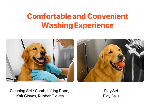 Accesorios completos: El lavabo para mascotas incluye ducha, grifo y conexión directa a la manguera doméstica para mayor durabilidad. También incluye paños de limpieza, escurridor, pelotas de juego, cepillo y guantes para que tu mascota disfrute al máximo del baño