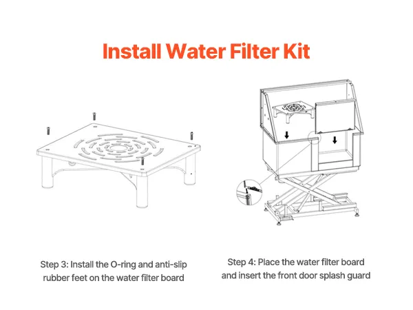 Tablero filtrante de agua mejorado: El tablero filtrante con textura antideslizante evita que las patas se atasquen, garantizando estabilidad y seguridad durante el baño. Con una capacidad de peso de 150 kg, es estable y seguro, permitiendo que mascotas de tamaño pequeño a mediano-grande disfruten de un baño relajante