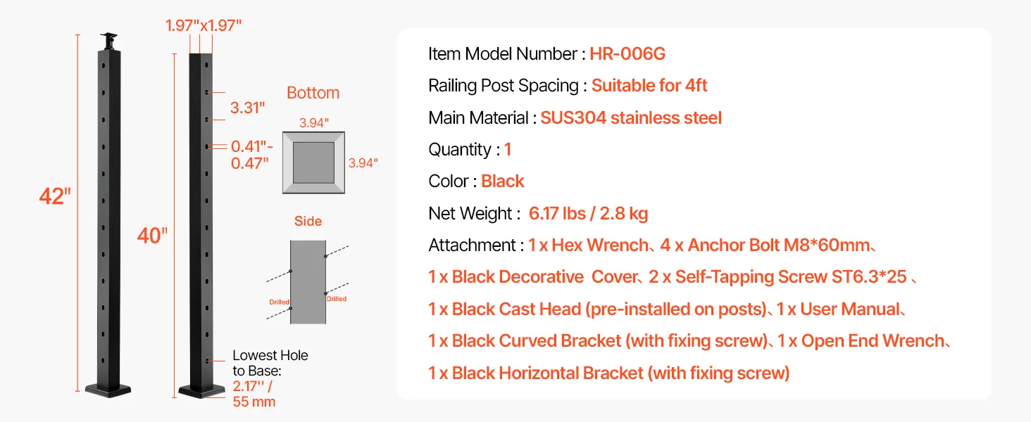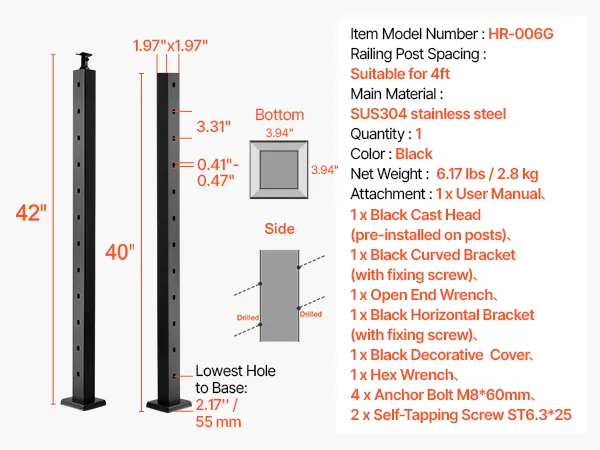 Fabricados en acero inoxidable SUS304 de alta resistencia, nuestros postes de barandilla de cable son duraderos y fáciles de instalar, con orificios y herrajes pretaladrados, son perfectos para asegurar cubiertas, barandillas, etc., cumpliendo con todos los requisitos reglamentarios.