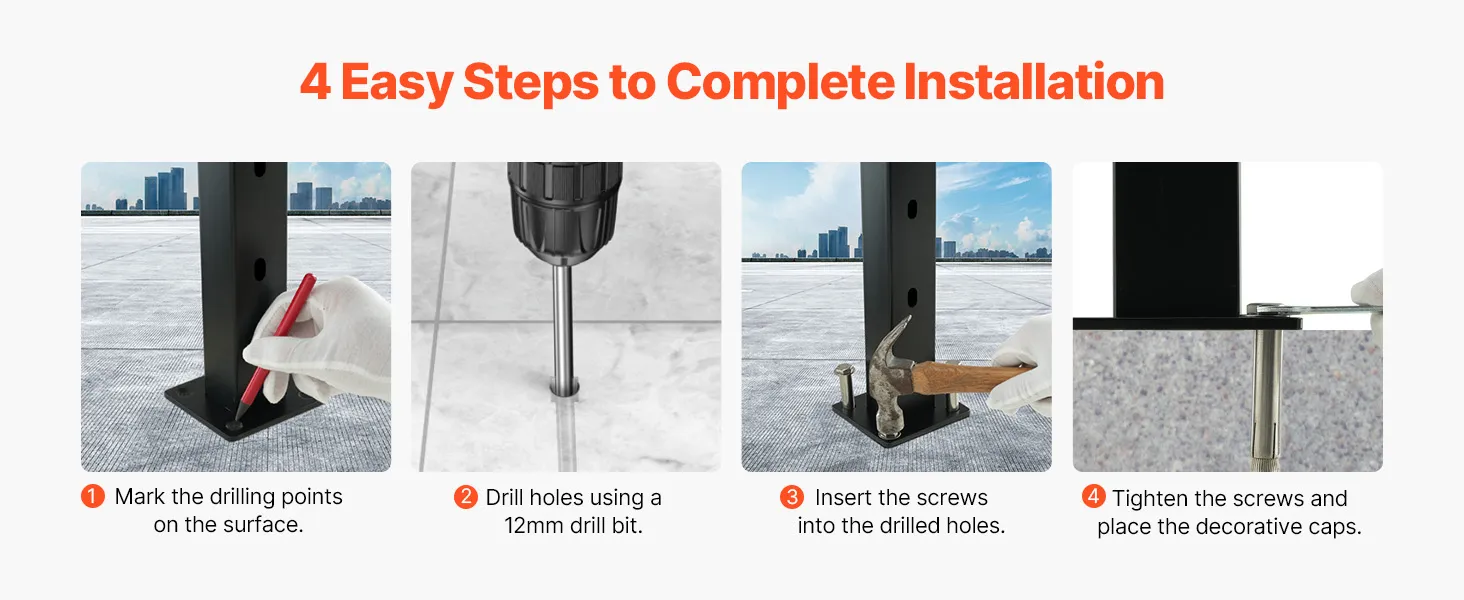 Fácil instalación y bricolaje: Este poste para barandilla de terraza incluye soportes horizontales y curvos, aptos para diversos tipos de orificios. Es compatible con pasamanos de tubo cuadrado y redondo, lo que permite personalizar los ángulos del pasamanos